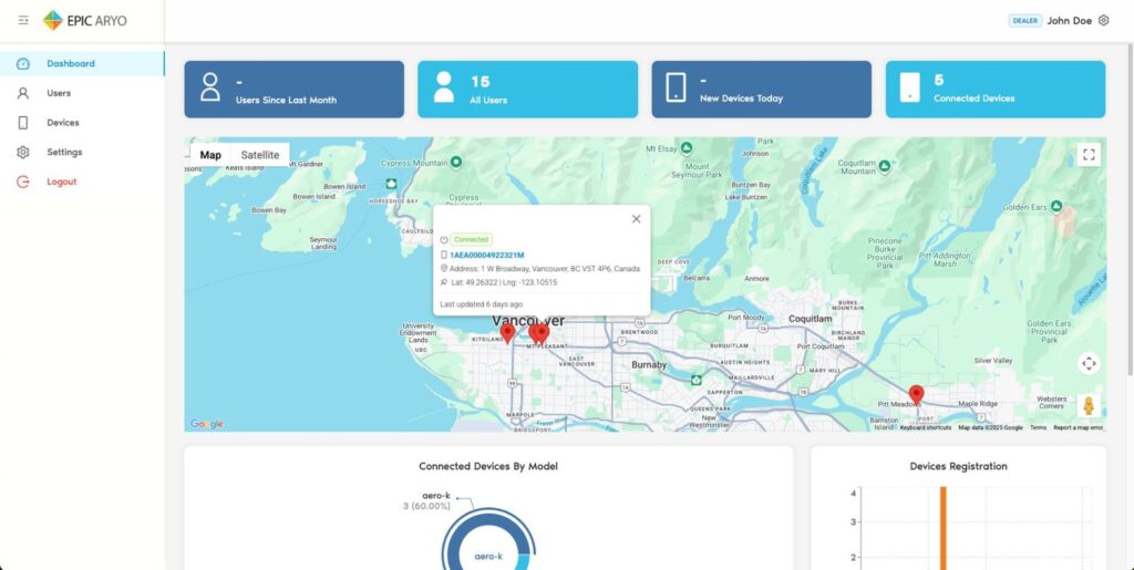 As part of Aryo Cloud, Epic Safety’s Global visibility & Mapping delivers a unified view of every connected device, including fire panels, pumps, controllers and other systems across all your facilities worldwide. From a single dashboard, you can monitor live system status, receive alerts, and pinpoint device locations on an interactive global map.
