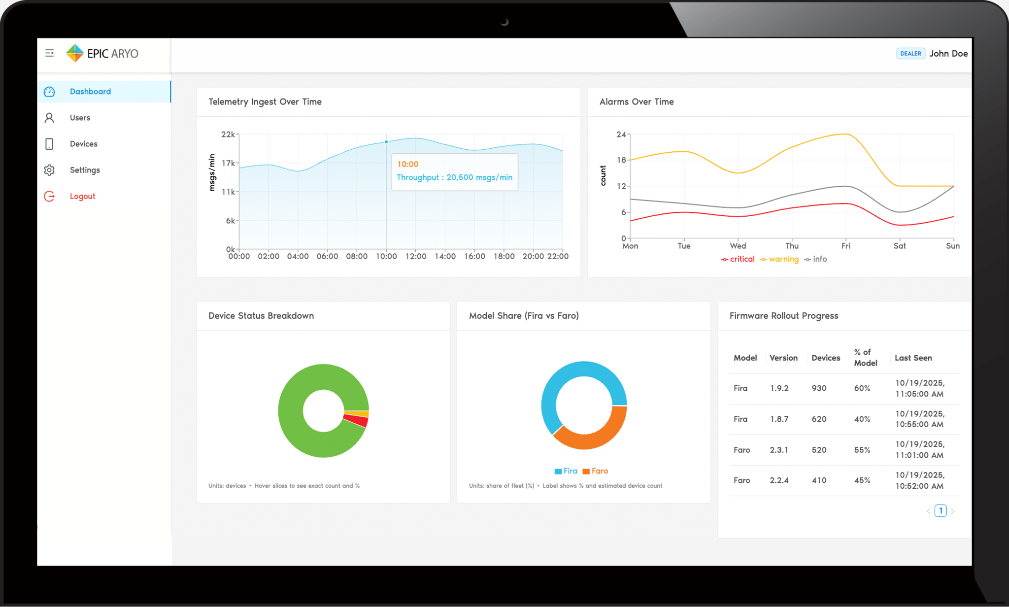 Expand your portfolio with OEM or white-labelled cloud connected solutions backed by Epic’s technology.